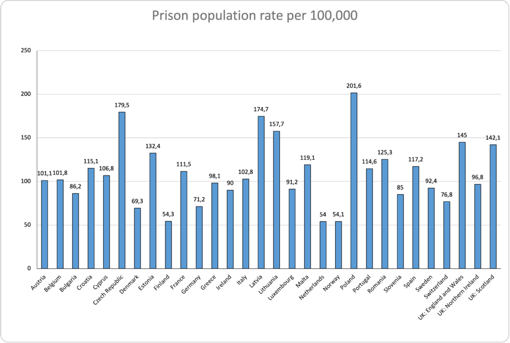 Source: Aebi, M. F. & Cocco, E. (2025). SPACE I – 2024 – Council of Europe Annual Penal Statistics: Prison populations. Council of Europe.